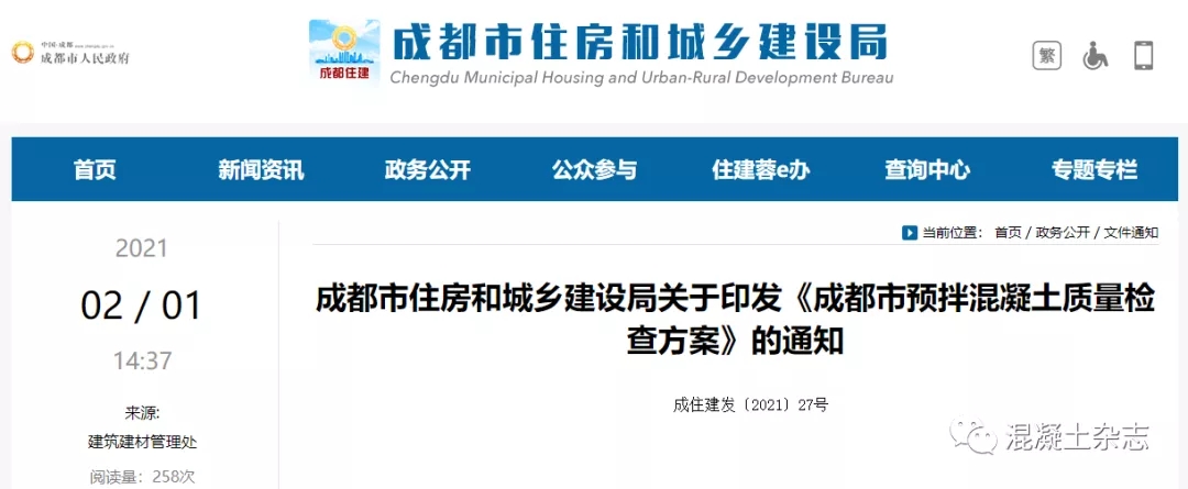 成都市住建局印发《成都市预拌混凝土质量检查方案》