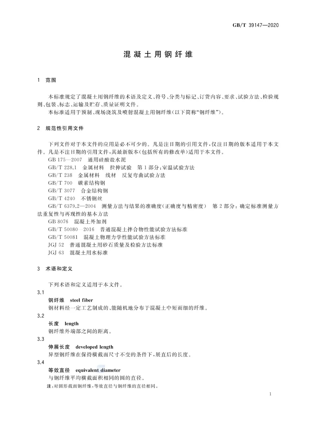 国家标准!混凝土用钢纤维 GB/T 39147-2020