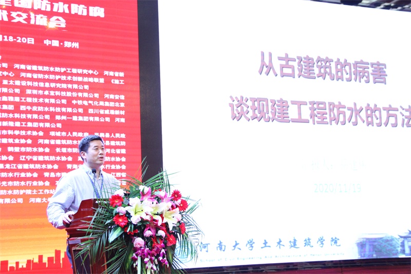 河南大学土木建筑学院院长岳建伟从古建筑的病害谈现建工程防水的方法。他认为,防水材料热胀冷缩、施工微裂缝、凝结水、施工工艺和程序控制不严等是工程防水通病的原因。他还分析了防水施工新工艺、刚柔结合的防水构造、能呼吸的防水材料、防水工程的检测方法等。