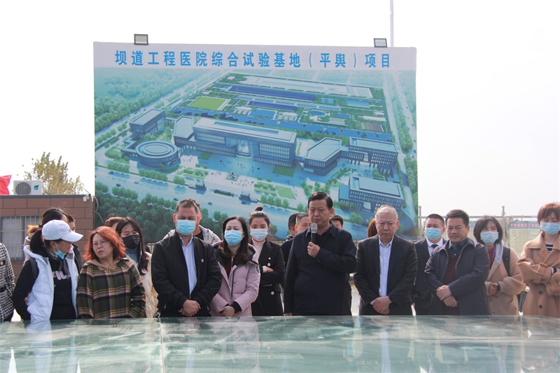 考察团首先来到平舆县坝道工程医院实地查看项目建设情况,详细了解平舆县对于防水产业的高度重视与远景规划。坝道工程医院最早由中国工程院院士王复明提出并倡导成立,旨在汇聚一流专家、特色技术及信息资源,融合互联网、大数据、人工智能等现代信息技术,创建“体检-诊断-修复-抢险”综合服务体系,搭建工程病害诊治与除险加固,产业发展与培训、科学研究、人才培养及工程技术人员培训的开放共享公益服务平台。坝道工程医院下设“工程120”、探测检测勘测、工程结构防水治水等12个科室。该项目建成后将成为科研成果转化、专业人才培养、高等教育深化改革的重要载体,更为平舆的产业高质量发展注入新活力、增添新动力。