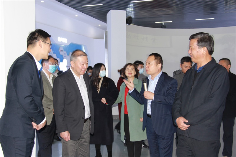 蓝翎环科董事长李宏伟对张可文一行的到访表示热烈的欢迎,陪同参观了全景体验展厅,生产车间、创新实验室等。重点对公司的发展现状、战略规划和企业文化向考察团做了详细陈述,让考察团对公司的发展情况有了更加详细的了解。