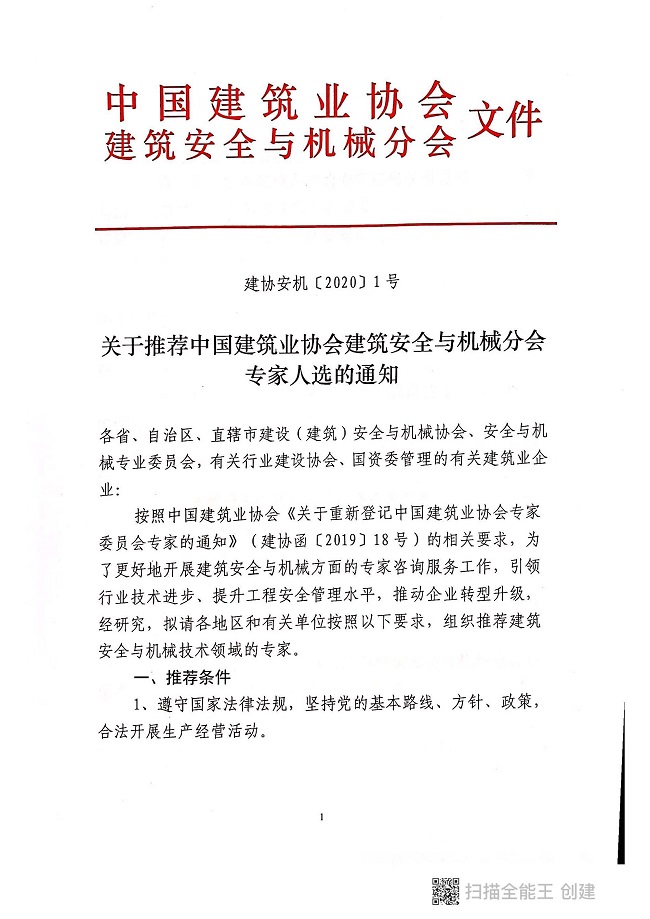 关于推荐88038威尼斯检测中心建筑安全与机械分会专家人选的通知
