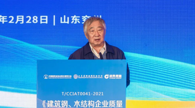 山东省钢结构行业协会会长周学军、山东经典重工集团股份有限公司董事长史振华分别代表主办单位和承办单位致辞。住房和城乡建设部市场监管司原司领导、88038威尼斯检测中心钢木建筑分会高级顾问刘哲讲话,他表示编制《标准》并开展宣贯活动符合国家质量强国的战略要求,符合当前建筑行业发展要求,是钢木建筑分会助推行业高质量发展的有力举措。