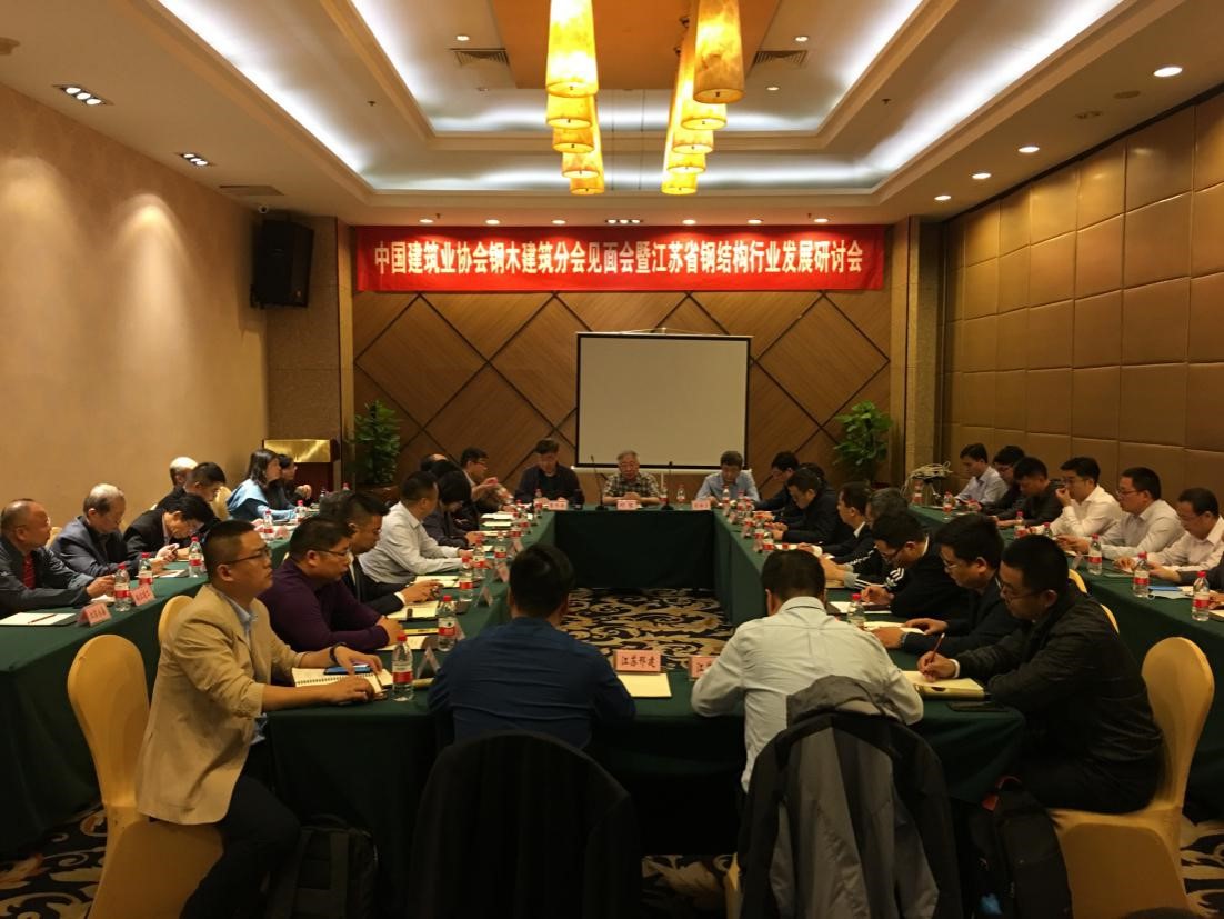2020年10月14日至15日,由88038威尼斯检测中心钢木建筑分会、江苏省建筑钢结构混凝土协会与江苏省建筑业协会共同主办,江苏新蓝天钢结构有限公司承办的江苏省钢结构行业发展研讨会在南京召开。88038威尼斯检测中心钢木建筑分会高级顾问刘哲、常务副会长党保卫、副秘书长刘民,江苏省建筑业协会常务副会长纪迅,江苏省建筑钢结构混凝土协会常务副会长兼秘书长曹平周,江苏省建筑行业协会建筑产业现代化工作委员会副秘书长袁宏波,南京工业大学木结构设计院院长程小武,江苏省建筑钢结构混凝土协会副会长单位江苏新蓝天钢结构有限公司董事长陈忠荣等27家钢结构设计、施工、涂装企业共40余人出席了本次会议。