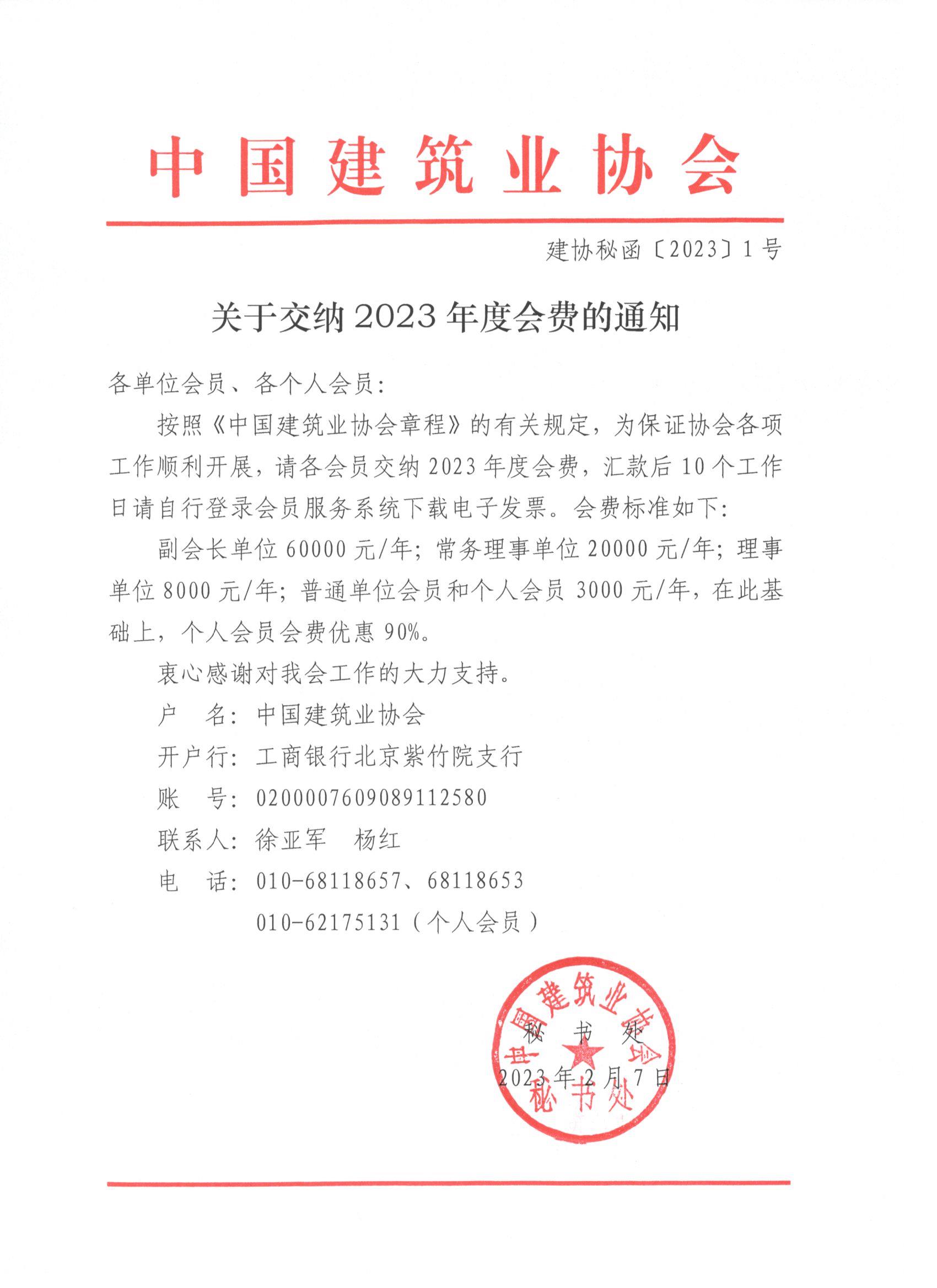 关于交纳2023年度会费的通知