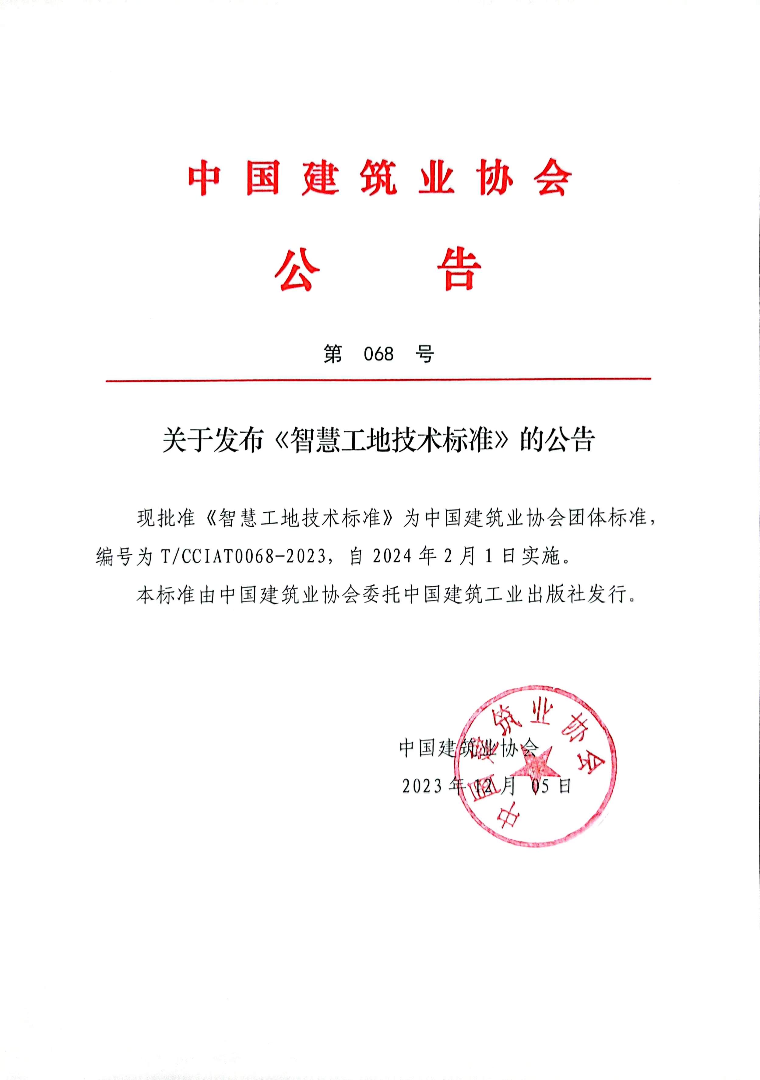 关于发布《智慧工地技术标准》的公告