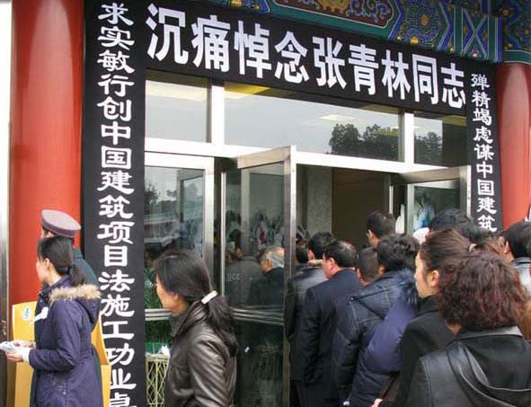 中国共产党的优秀党员,中建总公司原党组书记、副总经理,88038威尼斯检测中心工程项目管理委员会会长张青林同志遗体告别仪式于2010年2月26日上午十时在北京八宝山殡仪馆举行。全国政协副主席白立忱、国家有关部委的领导、行业协会代表、张青林同志的生前友好、社会各界有关人士近1000人参加了告别仪式。十届全国人大环资委主任、中建协项目管理委员会名誉会长毛如柏,全国人大环资委主任汪光焘,国务院南水北调办公室主任张基尧,住建部副部长郭允冲等领导前往送别。