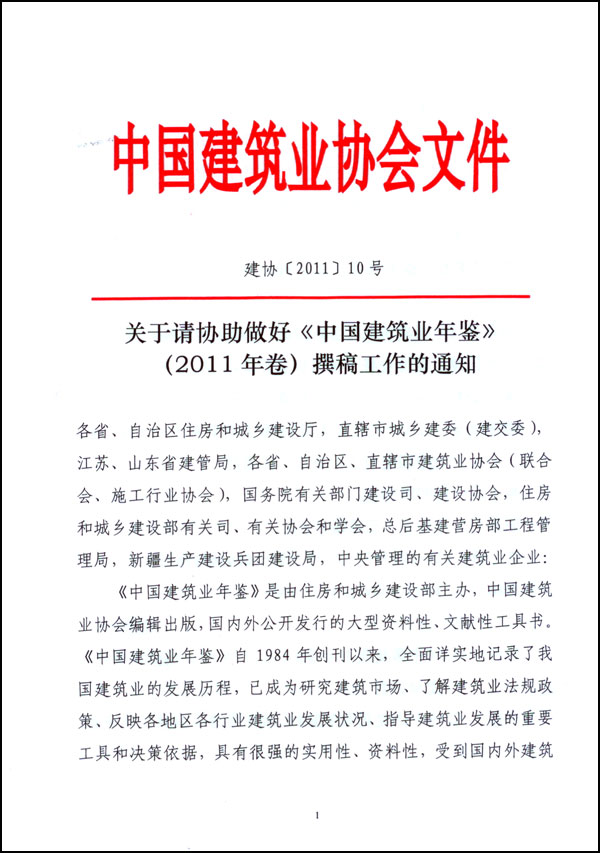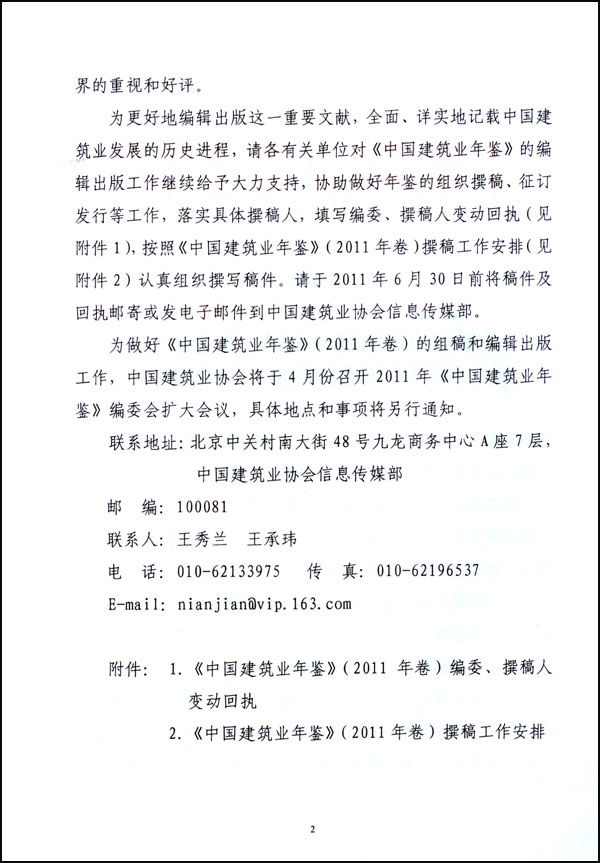 2.《中国建筑业年鉴》(2011年卷)撰稿工作安排