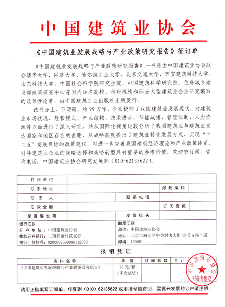 《中国建筑业发展战略与产业政策研究报告》征订单