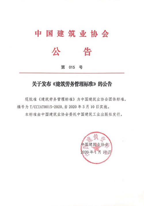关于发布《建筑劳务管理标准》的公告