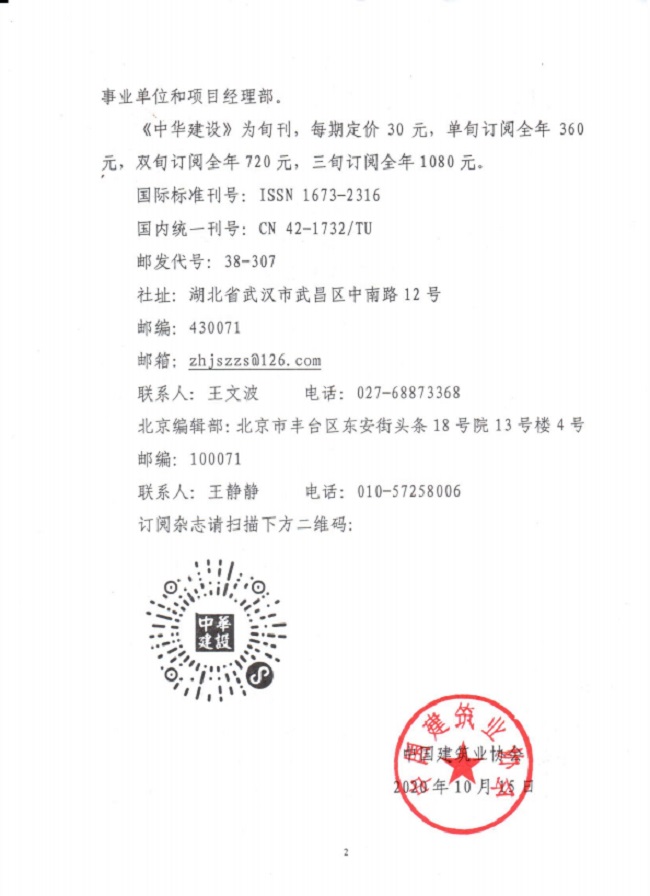 关于请协助做好2021年度《中华建设》 订阅工作的通知