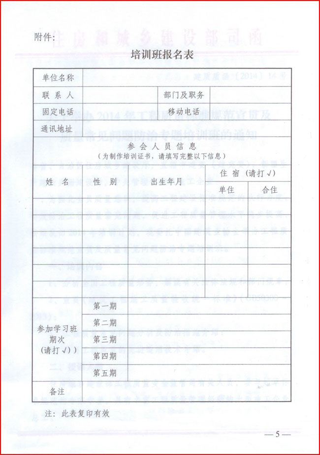 附件:关于举办2014年工程质量标准规范宣贯及质量常见问题防治专题培训班的通知