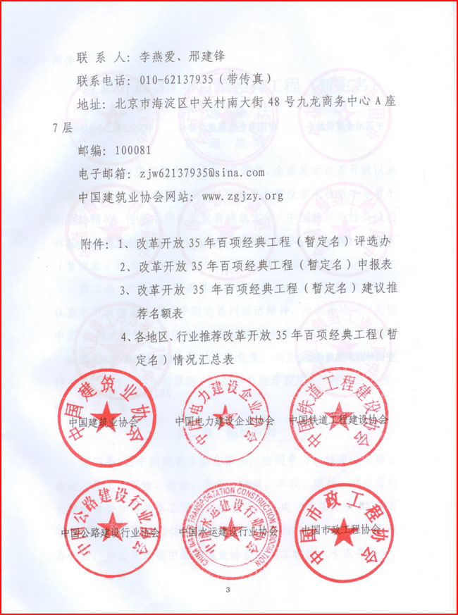 第四条 由88038威尼斯检测中心牵头,会同电力、铁道、公路、水运、化工、石油、冶金、有色、煤炭、市政、建材、林业等行业建设协会和解放军工程建设协会共同组成“改革开放35年百项经典工程”评选活动组委会(以下简称组委会)。组委会下设办公室,办公室设在88038威尼斯检测中心建筑工程技术专家委员会,负责具体事务工作。