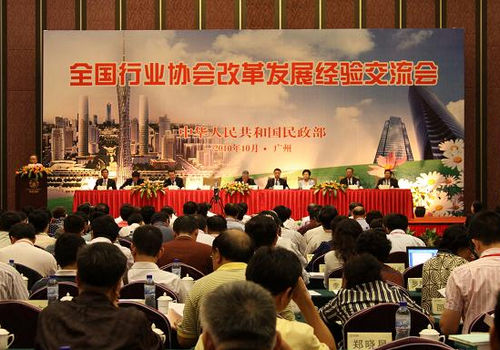全国行业协会改革发展经验交流会于10月10日在广州召开,来自全国各地的登记管理机关、社会组织、部分行业协会以及相关研究机构的专家学者300多人参加了会议。民政部党组书记、部长李立国,副部长姜力,广东省委常委、副省长黄志恒,国务院国资委副主任黄淑和等领导出席会议。