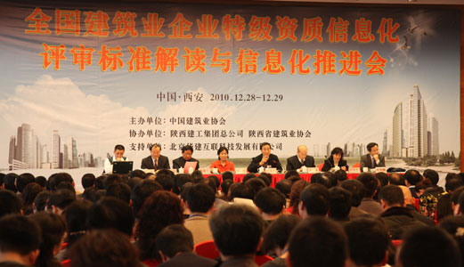 为推动住房城乡建设部《施工总承包企业特级资质标准实施办法》和信息化标准的贯彻实施,帮助企业深入了解特级资质就位中的有关政策要求和信息化评审的标准、范围及重点,促进建筑业企业信息化建设,88038威尼斯检测中心于2010年12月28-29日在陕西省西安市召开了全国建筑业企业特级资质信息化评审标准解读与信息化推进会。住房和城乡建设部建筑市场监管司处长燕平、陕西省住房城乡和建设厅副厅长许龙发、88038威尼斯检测中心副会长兼秘书长吴涛出席会议并讲话。来自全国500余家特级、一级施工总承包企业的信息化、项目和资质管理的负责人员参加了会议。会议由88038威尼斯检测中心副秘书长尤完同志主持。