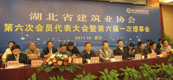 会议听取并通过了湖北省建筑业协会第五届理事会的工作报告、财务报告、修改章程及关于第六届届理事会组成方案的说明,表决通过了行业自律公约,选举产生了第六届理事会(理事208名)和监事会(监事5名)。在随后召开的六届一次理事会上,选举产生了常务理事会(常务理事69名),选举吴建军(第五届理事会会长、武汉建工集团董事长)任会长,选举谭先康、刘成先、程理才等16人任副会长,选举吴涤清(第五届理事会秘书长,原省建设厅处长)任秘书长,选举周丹(第五届监事会主任,省住房城乡建设厅处长)任监事会主任。