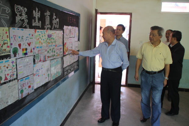 徐义屏副会长、四川省建筑业协会杨乾芳执行会长和花园小学的同学们亲切交谈