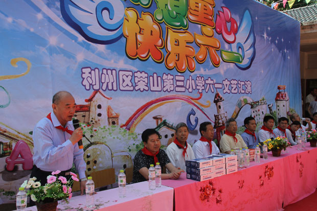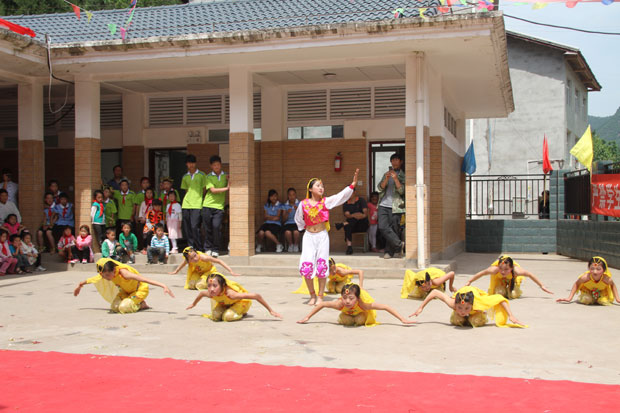 捐赠仪式之后,荣山三小的小演员们表演了精彩的文艺节目。文艺表演结束,各位领导和孩子们集体合影留念。