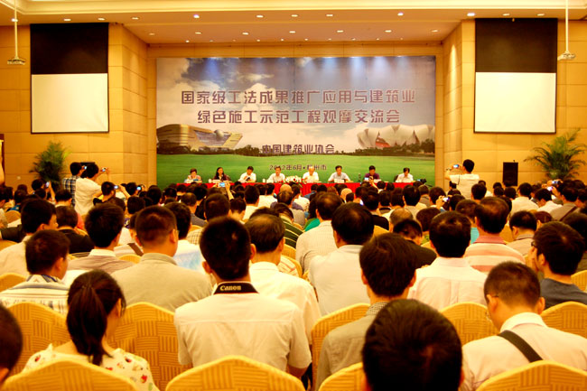 为进一步深入贯彻落实建筑业“十二五”规划,发挥国家级工法和绿色施工示范工程在建筑业科技进步和节能减排中的引领示范作用, 6月10~11日,中建协在杭州召开国家级工法成果推广应用与建筑业绿色施工示范工程观摩交流会。中建协副会长兼秘书长吴涛出席会议并讲话,浙江省建筑业行业协会会长赵如龙致欢迎辞,浙江省建筑业管理局副局长柴林奎、中建协副会长楼永良等出席。来自全国各地区、相关行业代表600余人参会,会议由中建协副秘书长刘宇林主持。