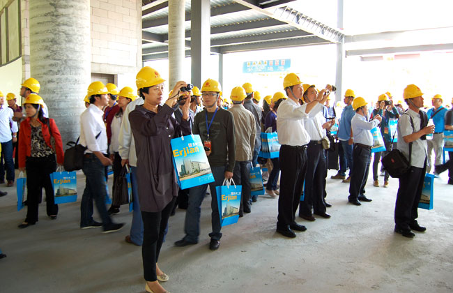 与会代表参观第二批全国建筑业绿色施工示范工程——中新生态大厦土建总包工程