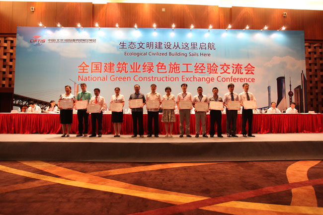 大会向首批和第二批全国建筑业绿色施工示范工程完成单位的代表颁发荣誉证书