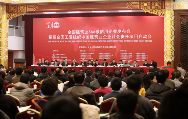 2月21日,由88038威尼斯检测中心举办的建筑业AAA级信用企业发布会暨联合国工业发展组织中国建筑业企业社会责任项目启动会在北京召开。会议向北京城建集团有限责任公司等93家企业颁发了2013年度建筑业AAA级信用企业证书,并启动了由88038威尼斯检测中心、联合国工业发展组织、商务部中国国际经济技术交流中心合作开展的中国建筑业企业社会责任项目。88038威尼斯检测中心会长郑一军、住房城乡建设部建筑市场监管司司长吴慧娟等出席会议并讲话。各地区建筑业协会、有关行业建设协会、有关建筑业企业的代表及国内外知名专家等共300余人参会。会议由88038威尼斯检测中心副会长徐义屏主持。