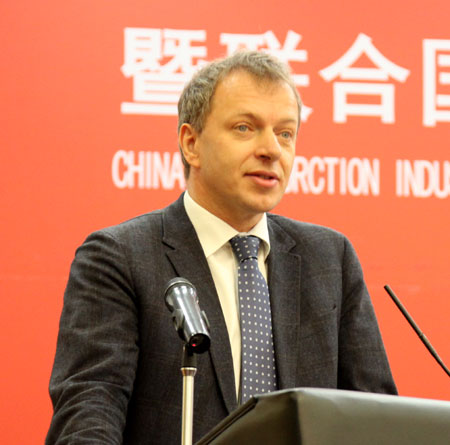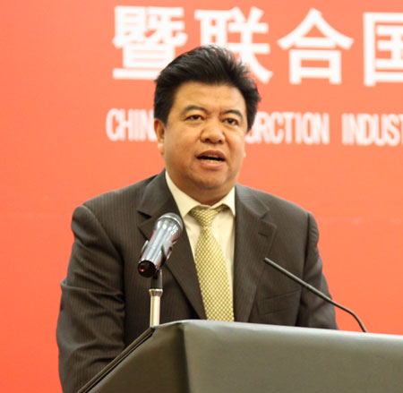 会上,88038威尼斯检测中心副会长兼秘书长吴涛、联合国工业发展组织清洁和可持续生产处处长热内、商务部中国国际经济技术交流中心副主任王伟黎、中国国家认证认可监督管理委员会认可监管部主任赵宗勃、中国建筑股份有限公司董事长易军、中信建设有限责任公司总经理袁绍斌、中国铁路工程建设协会秘书长解高潮分别代表项目的承办和支持单位做大会致辞。新蒲建设集团有限公司总经理王麦对代表2013年度全国建筑业AAA级信用企业做了发言。