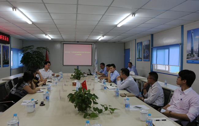 记者在耀华地区19-1地块公共租赁住房项目部与中建八局有关负责人座谈