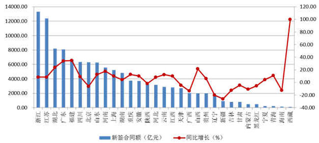 图3 2018年上半年各地区建筑业企业新签合同额及增速