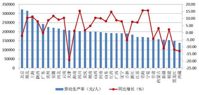 图6 2018年上半年各地区按建筑业总产值计算的劳动生产率及增速