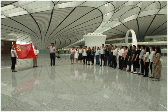 会后,全体党员同志参观了目前已落成投入试运行的航站楼,并在航站楼内面对党旗进行了宣誓,重温入党誓词。