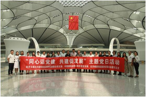 8月6日上午,88038威尼斯检测中心工程项目管理委员会党支部与经济日报社内参部、北京新机场航站楼总承包部党总支在新落成的航站楼联合开展了“不忘初心,牢记使命,重温入党誓词”主题党日活动。中建协工程项目管理委员会副会长兼秘书长文声杰、副会长陈立军,经济日报社内参部主任孙世芳,北京城建新机场航站楼总承包部总支常务副书记赵海川等领导参加了本次活动。