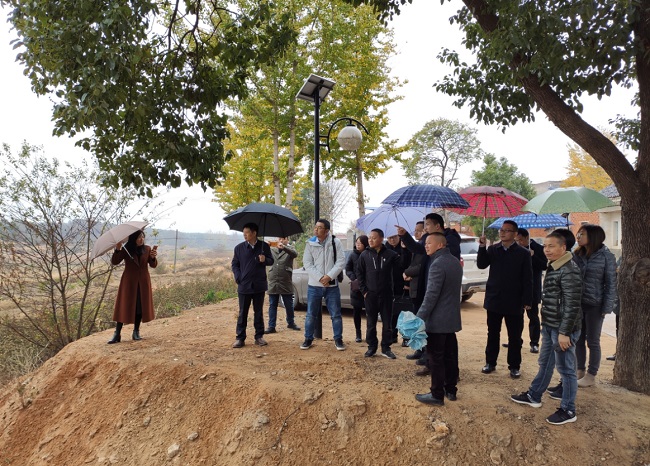 捐赠活动后,一行人赶往二程镇罗山村,实地查看了村容村貌。捐赠方与镇领导详细商讨了一处老池塘的改造援建工作。该池塘作为村里20多亩农田的灌溉和牲畜饮水,修缮后将大幅改善灌溉条件,提升村容村貌。
