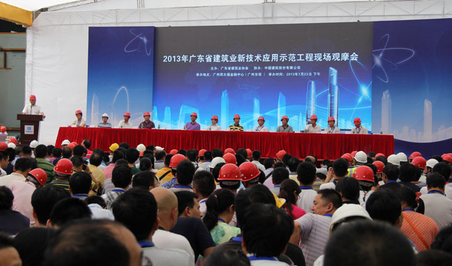 中国建筑股份有限公司东塔项目部在大会上介绍了广州东塔工程中技术创新和科学管理的经验。会后,1200多名参会代表观摩了项目现场,并表示此次观摩受益匪浅。