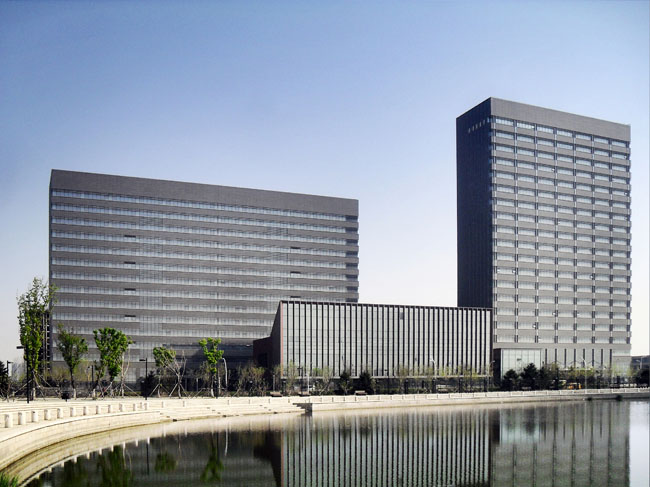 沈阳规划大厦,建筑面积约4.4万平米,地上由2个子项组成,包括一栋15层的规划测绘研发中心办公楼和一栋2层的中介服务中心及上述后浇带以东的地下室,其中地下部分与一标段组成一个大底盘地下室,平时作为地下停车库,局部战时作为物资库。整个规划大厦集规划设计、国土资源利用、建筑设计、市政工程设计、地理信息、勘察测绘、工程咨询为一体。作为科技、信息中心,建成后将成为区域性乃至全国性的规划学术交流中心。