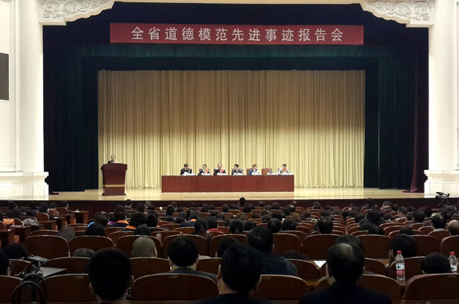 会上,陕西省第四届敬业奉献道德模范、西安铁路局安康工务段巴山区工长王庭虎、第五届全国诚实守信道德模范提名奖、宝鸡市眉县横渠镇严家庄村严平安的代讲者李欣、第五届全国孝老爱亲道德模范提名奖、商洛市柞水县石瓮镇胜利村村民张德凤的代讲者王希西、陕西省第四届敬业奉献道德模范、商洛市供电局山阳分局南宽坪供电所工人宁启水的代讲者吕珠珠、第五届全国孝老爱亲道德模范、文化艺术报总编辑陈若星等5位同志作了报告。