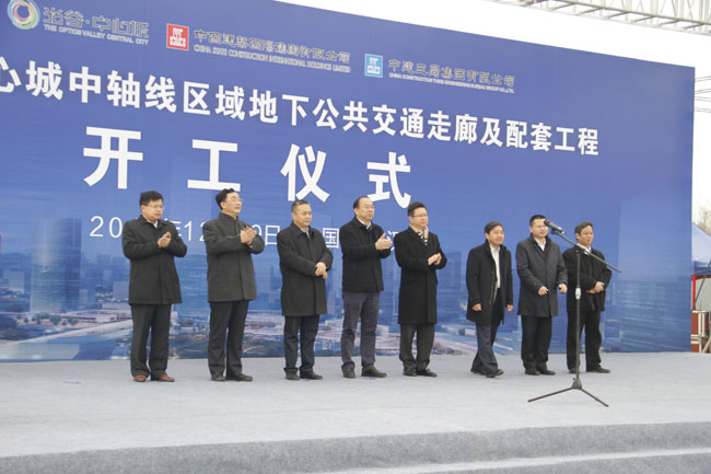 12月19日,中建三局承建的光谷中心城中轴线区域地下公共交通走廊及配套工程项目全线正式开工,武汉市委常委兼武汉东湖新技术产业开发区党工委书记胡立山、中建国际董事局主席兼行政总裁周勇、中建三局总经理、党委副书记易文权、中建三局副总经理李勇、中建三局二公司董事长、党委书记樊涛生以及其他各参建单位相关领导出席了开工仪式。