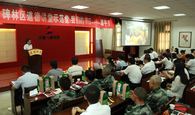 6月7日,由西安市碑林区文明办主办,陕建八建集团承办的西安市碑林区道德讲堂示范堂“我们的节日•端午节”隆重举行。来自碑林区机关、企业、学校和社区的120多名职工群众参加活动。