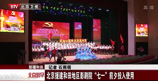6月30日,和田地区庆祝中国共产建党95周年和长征胜利80周年“万方乐奏颂党恩”歌咏比赛在北京援建的和田影剧院落下圆满帷幕。新疆和田指挥部党委书记、总指挥卢宇国,北京援建和田指挥部副指挥、和田地区行署副专员刘晓光等人同北京建工四建援疆将士一同观看了演出。
