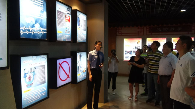 进入教育基地的大门,地面上赫然一堆电子投影的枫树叶,走上去,枫树叶自动散去,下面露出一个大大的“正”字。解说员说,只有踏 “正”才是国家党员干部的安身立命之本。这种特色的教育形式大家纷纷表示赞赏。