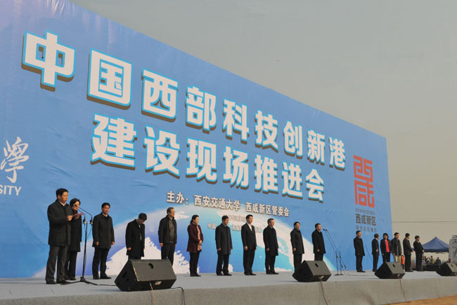 2月26日上午10点,由陕西建工集团总承包的中国西部科技创新港在西咸新区沣西新城盛大开工,陕西省省长胡和平下达开工令,省委副书记毛万春、省委常委、西安市委书记王永康、西安市市长上官吉庆、咸阳市委书记岳亮、市长卫华等领导出席仪式。开工仪式由省人大常委会副主任、西安交通大学党委书记张迈曾主持;陕西省副省长庄长兴和教育部科技司副司长娄晶到会并致辞;西安交通大学校长王树国、陕西建工集团党委书记、董事长刘耀华、西安市政协党组书记、西咸新区党工委书记、管委会主任岳华峰分别介绍了项目规划和建设情况。在响彻天际的汽笛声和机械鸣响声中,工信部、教育部、国家计生委、陕西省、咸阳市、西咸新区各级领导、西安交通大学师生、陕建集团员工以及媒体朋友共同见证项目全面启动的这一激动时刻。