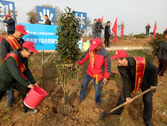 近日,中建三局二公司基础设施公司团总支响应“学雷锋精神•做争先青年”的号召,组织武汉、十堰、襄阳三大片区青年职工开展“建设生态襄阳 中建三局青年在行动”为主题的义务植树活动,用实际行动为肃然大地添新绿,为城市建设添生机。