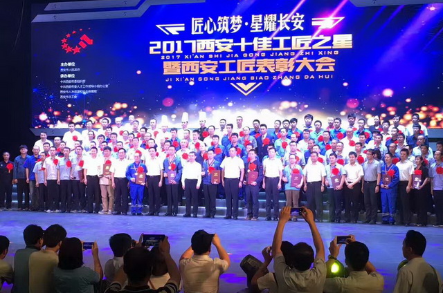 6月14日,西安市人民政府主办的2017西安十佳工匠之星暨西安工匠表彰大会在西航科技教育文化中心召开,西安市市长上官吉庆致辞,“西安十佳工匠之星”和“西安工匠”共100位各行各业的技术能手荣获表彰。