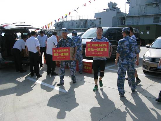 今年是中国人民解放军建军90周年。在“八一”建军节来临之际,为加强军民团结,扎实做好拥军优属工作,进一步巩固和发展军民关系,营造“军爱民、民拥军”的良好社会氛围,青岛一建集团有限公司党委副书记、副总裁韩聪兴一行十余人前往军民共建单位“青岛舰”进行慰问并送去节日礼品。