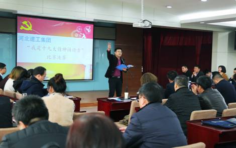 12月1日下午,为进一步学习宣传贯彻党的十九大精神,准确领会把握十九大精神的思想精髓、核心要义,河北建工集团党委、团委联合举办了“不忘初心跟党走 砥砺奋进建新功——我是十九大精神诵读者”比赛活动。集团母子公司36名选手参加现场比赛,经过激烈角逐,评出了一、二、三等奖。集团党委副书记张庆虎及母子公司近百名干部职工观看了比赛。