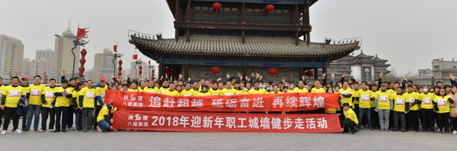 12月29日下午,陕建八建集团领导班子、机关职工、基层单位部分代表、青年志愿者代表330人开展城墙健步走活动,庆祝集团晋升为“特级”资质企业和迎接2018年新年到来。