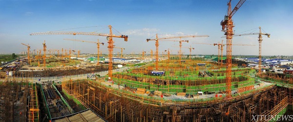 陕建集团作为一期项目的施工总承包单位,将这个项目列为陕建的“五个一工程”(“一号工程”、“一把手工程”、“一流的项目经理”、“一流的工程质量”、“一流的管理团队”)。面对项目建设面积大、施工范围广、工期时间紧的特殊情况,各参建单位以“见红旗就扛,有第一就争”的奋斗精神,改写了一个又一个数字,打破了一项又一项纪录。历经一年多的夜以继日、攻坚克难,2万名工人和600多名管理人员用汗水和心血浇筑了工程,用奉献与责任履行了承诺,交出一份份满意的答卷。