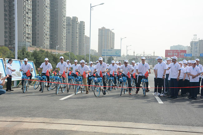 为庆祝黄石湖滨大道改造工程通车,近日,中建三局二公司基础公司开展了“喜迎省运会,全线贯通健康行”活动,国旗飘扬,司旗招展,建设者、领导等百余人骑行自行单车庆祝。