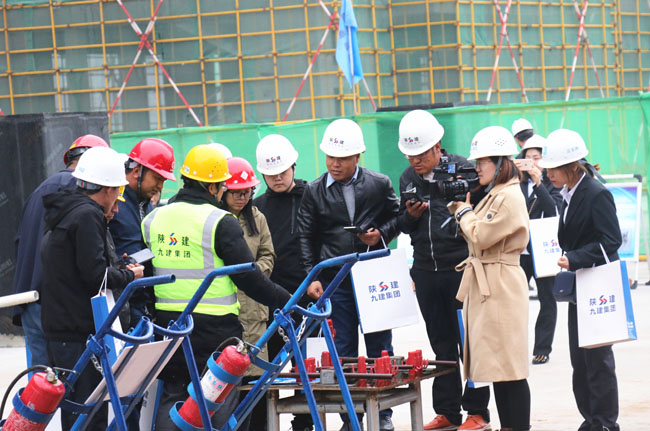 本次现场观摩会项目部以“安全文明、绿色建筑”为项目宣传理念,重点展示了智慧工地、塔吊防碰撞、BIM 技术+VR虚拟漫游、无人机航拍安全巡检、绿色施工系统、扬尘自动监管系统、钢板网外架防护、工具式防护栏、装配式钢板道路、安全生产体验、装配式旗台、扬尘自动监管系统、集装箱式茶水厅、废水回收系统、实体样板间、太阳能热水系统、光伏照明等十七项工程亮点。