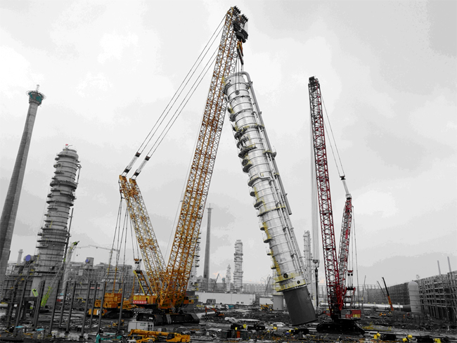 12月9日,浙江省工业设备安装集团有限公司第五分公司承建的浙江石油化工有限公司4000万吨/年炼化一体化项目一期芳烃装置苯甲苯塔吊装顺利完成。